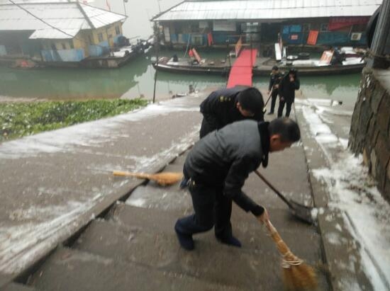 近日,常德遭遇连续低温雨雪冰冻天气,市海事局立即启动应急预案,清扫码头积雪,确保通航安全和旅客上下船安全。